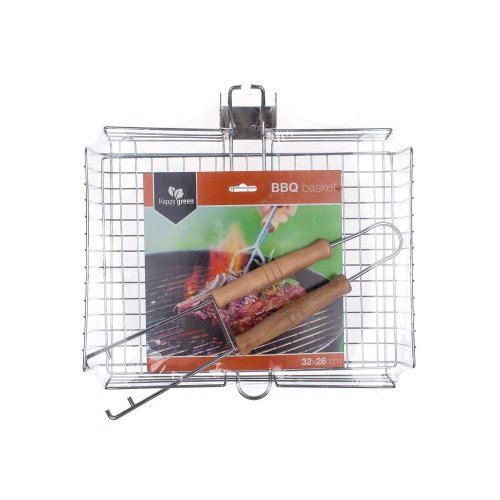 Grilovací koš s dřevěnou rukojetí je ideálním pomocníkem při přípravě většího množství kusů masa, ryb a zeleniny. Tři výškově stavitelné polohy zajišťují ideální umístění připravovaného pokrmu. Koš je vyroben z pochromované oceli.