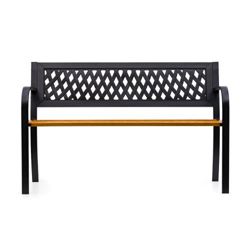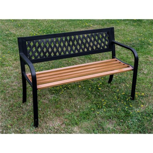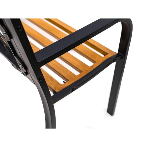 Zahradní lavička LARNAKA je vyrobená z oceli v černé barvě v kombinaci s nástřikem imitujícím přírodní dřevo. Rozměry lavičky: 119 x 50 x 75 cm. Nosnost lavičky: 150 kg.