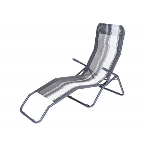 Plážové lehátko černé - pruh, je ideální na vaší zahradu, rozměry lehátka: 142 x 60 x 96 cm, kovová konstrukce s plastovými doplňky. Lehátko lze nastavit do dvou poloh (sed / leh), ze sedící polohy stačí přenést váhu těla do záklonu a lehátko se položí do vodorovné polohy (tvar lehátka zůstává stejný).