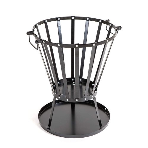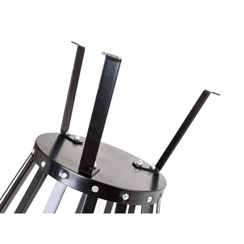 Přenosné zahradní ohniště GOBLET o celkové výšce 49 cm je kónického tvraru vybevené madly pro snadné přenášení o velikosti 11 x 5 cm. Dále má podkladovou deskou o průměru 36 cm a hloubce 2 cm pro zachycení odpadávajících zbytků uhlíků a popele. Ohniště je tvořeno 16ti kovovými tyčkami o velikosti 31 x 2 cm a 3 nohami o velikosti 18,5 cm x 2,5 cm.