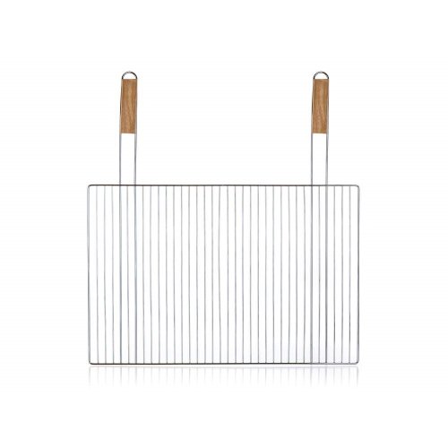 Grilovací rošt hranatý BBQ s dřevěnými rukojeťmi o rozměrech 60 x 40 cm využijete pro snadné grilování masa, zeleniny apod., je vhodný také pro zděné zahradní grily. Rošt je vyroben z pochromované oceli, počet drátů na roštu je 36 kusů.