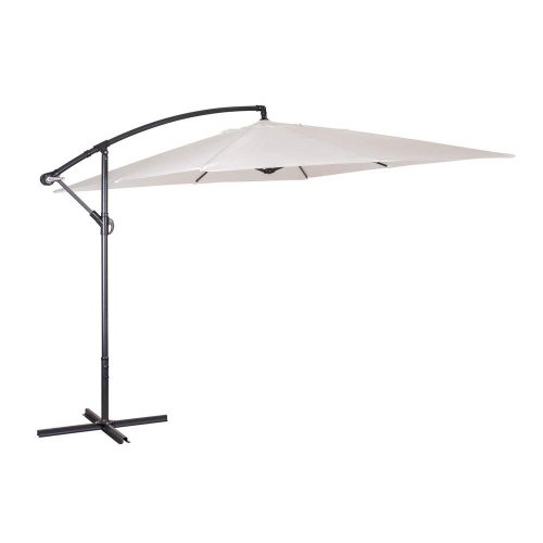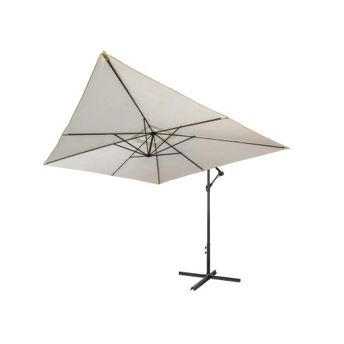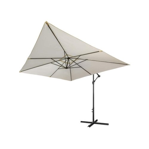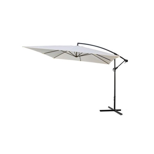 Závěsný slunečník NEVADA čtvercový 3 x 3 m má 8 ocelových žeber 12 x 18 mm, je vyrobený z polyesteru 160g / m2. Pevná ocelová tyč má průměr 48 mm. Stojan (součástí výrobku) je možno zatížit betonovými dlaždicemi pro zvýšení celkové stability. Otevírání slunečníku se provádí kličkou. Barva béžová / ocelová tyč černá.