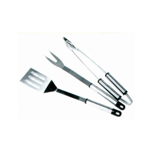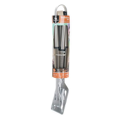 3dílná sada grilovacího náčíní obsahuje kleště, obracečku a vidličku z nerez oceli. Sada obsahuje základní nářadí potřebné při grilování. Nářadí je vybaveno očky pro zavěšení.