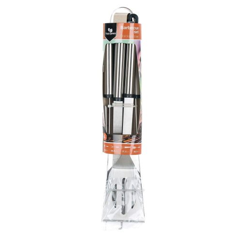 4dílná sada grilovacího náčiní obsahuje kartáč, kleště, obracečku a vidličku z nerez oceli. Sada obsahuje základní nářadí potřebné při grilování. Nářadí je vybaveno očky pro zavěšení.