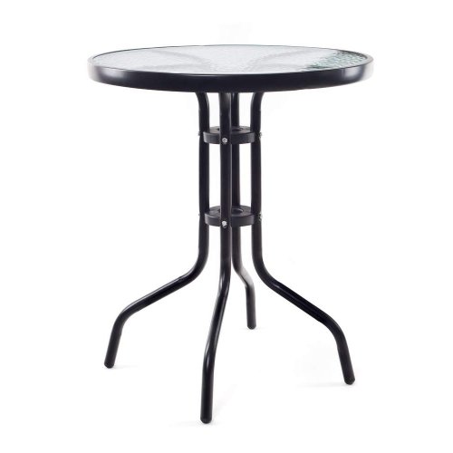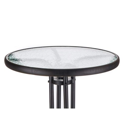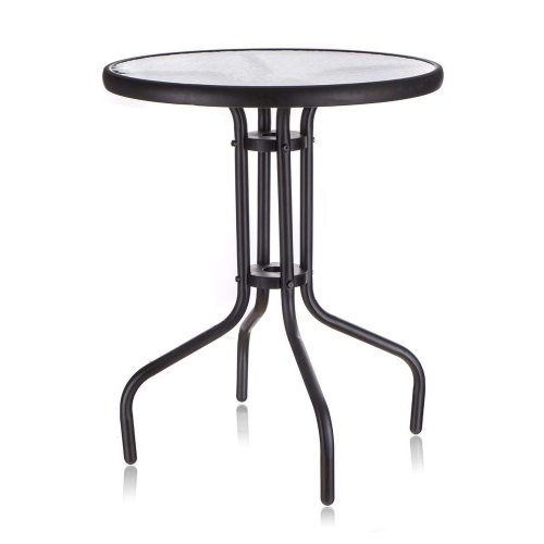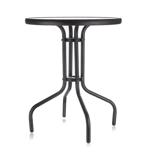 Stolek kovový průměr 60 cm, výška 70 cm se skleněnou deskou v černém provedení je vhodný všude tam, kde potřebujete větší stabilní rovnou plochu. Stolek je lehký, snadno se s ním manipuluje. Stolek využijete na zahradě, terase nebo balkónu.