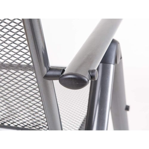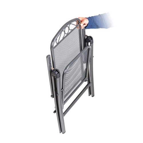 Ocelová zahradní židle s opěrkou, zakončenou vkusným dekorem se hodí zejména do zahrad a na terasy domů. Židle je ošetřena dvojitou vrstvou lakování. Základní úprava je provedena systémem E-coating, což je jedna z nejodolnějších a nejvýhodnějších metod ošetření, zajišťující ochranu proti korozi i na skrytých místech. Následně jsou židle opatřeny práškovým lakem, který určuje finální barvu produktu. Nosnost je 100 kg.