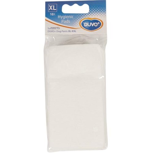 Balení 10 kusů hygienických vložek určených k nalepení do háracích kalhotek. Absorpční vložky jsou měkké, pohodlné a šetrné k pokožce psa. Velikost: XL–XXL Rozměry vložky (cca): 12,5 × 6,5 cm Použití: Vložku nalepte do psích kalhotek pomocí lepícího proužku. Vložku vyměňujte několikrát denně dle potřeby.