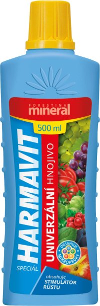 Hnojivo HARMAVIT se přednostně používá pro ovocné dřeviny, vinnou révu, zeleninu, okrasné dřeviny a další. Hnojivo obsahuje mikroprvky v chelátové formě: bór, měď, železo, mangan, zinek, titan a růstový stimulátor PH 7-8,5. Harmavit neobsahuje chloridy.