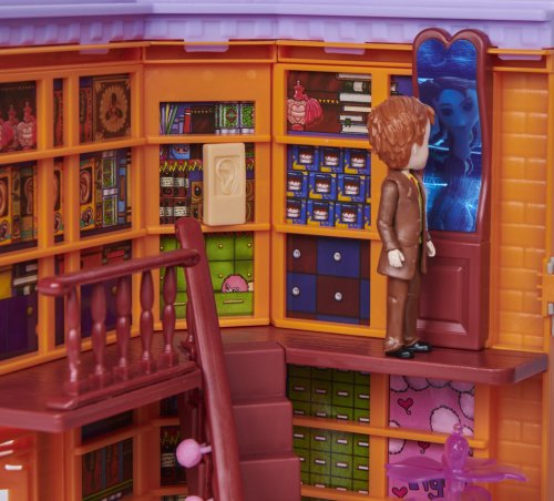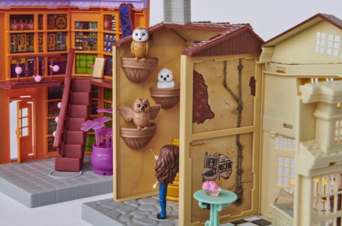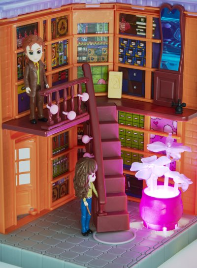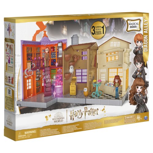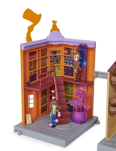 Slavná příčná ulice jako herní sada s Hermionou, Fredem a budovami obchodu s žertovnými předměty Freda a George Weasleyových, Velkoprodejny Mžourov a Zmrzlinářství Florena Fortescue. Scény dokreslují světla a zvuky spolu s příslušenstvím jako záškolácké zákusky, ultradlouhé uši, děsivý dělobuch, lektvary lásky, trpaslenka, sovy, zmrzlinový pult, pokladna a stůl. Vhodné od 6 let.