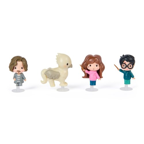 Prožijte dramatickou scénu z Harryho Pottera a Vězně z Azkabanu se sadou figurek z kouzelnického světa z řady Micro Magical Moments! Toto deluxe multibalení obsahuje figurky Harryho Pottera, Hermiony Grangerové, Siriuse Blacka a Klofana o velikosti 3,81 cm, průhlednou krabičku s oboustranným pozadím a čtyři stojany na figurky. Rozbalte si své postavičky a objevte jejich rozkošné detaily: Harryho jizva a brýle, Hermiona držící hůlku, pruhovaná uniforma, kterou má na sobě Sirius, a Klofanova křídla! Tematické pozadí krabičky zobrazuje klíčovou scénu záchrany Siriuse Blacka a Klofana – detail, který si fanoušci a sběratelé Harryho Pottera zamilují. Postavy si můžete vystavit na stojanu, v krabičce nebo je postavit samostatně. Pro více strhujících možností vystavení se krabičky dají naskládat na sebe a pospojovat s ostatními sadami a figurkami z řady Micro Magical Moments (každá se prodává zvlášť)! Posbírejte je všechny a vytvořte si vlastní jedinečné scény z kouzelnického světa! Hračky z kouzelnického světa Harryho Pottera jsou nezbytným dárkem pro holky, kluky a fanoušky, kteří mají rádi miniaturní hračky, sběratelské předměty, kouzelnické hůlky, akční figurky, panenky a doplňky pro panenky. Jsou skvělým dárkem k narozeninám, Vánocům nebo jako drobná pozornost. Rozšiřte svou kolekci postav z kouzelnického světa sadou figurek ze scény záchrany z filmu Harry Potter a Vězeň z Azkabanu z řady Micro Magical Moments!
