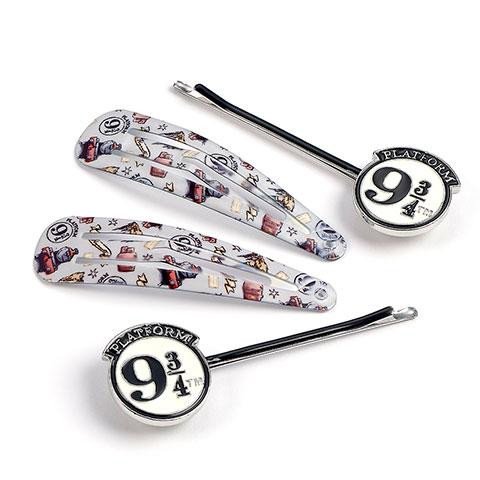 Sada 4 kusů sponek do vlasů s motivy Nástupiště 9 a 3/4 pro fanynky Harryho Pottera a jeho fantastického světa.
