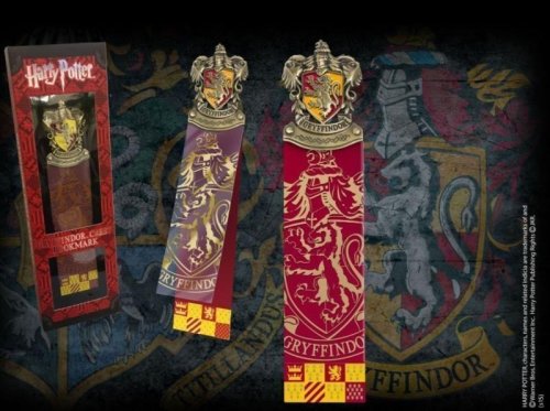 Stylová záložka pro fanoušky Harryho Pottera. Detailně zpracovaný ručně smaltovaný erb v horní částu záložky. Délka: 24x8 cm, Materiál: kov a PVCOficiální licence Harry PotterVýrobce: britská společnost Noble Collection