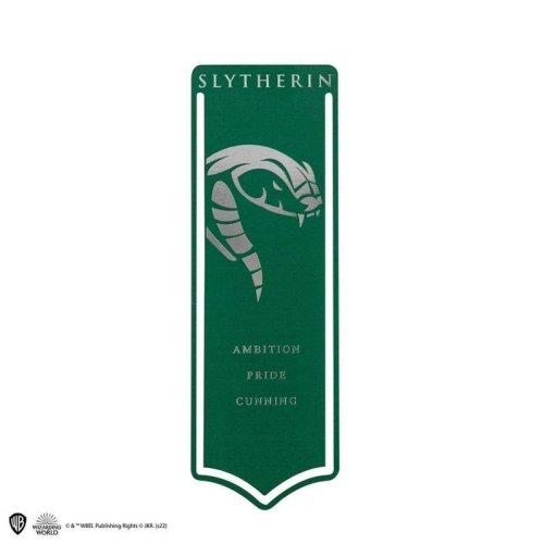 Kovová záložka s motivem bradavické koleje Zmijozel. Rozměry: 16 x 5,5 cm.