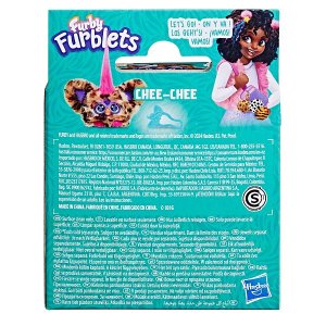Furblet Chee-Chee hraje veselou hudbu. Více než 45 zvukových reakcí: Furblets mluví jazykem Furbish, vydávají legrační zvuky a zpívají originální melodie. Dokážou harmonizovat, společně zpívají písně a společně interagují s velkou hračkou Furby. Díky odnímatelnému klipu lze Furblet snadno připnout na batoh nebo tašku. Pro provoz jsou potřeba 3ks baterie typu LR44 (jsou součástí balení).