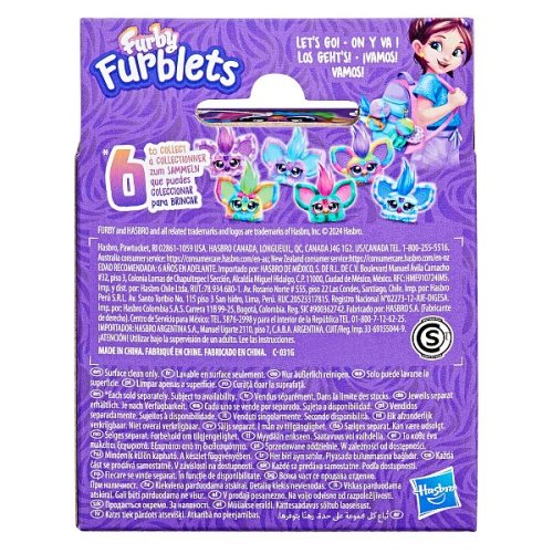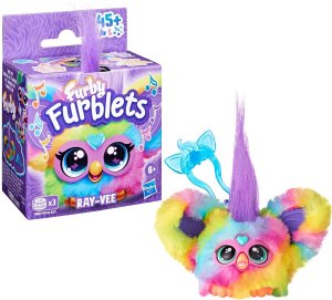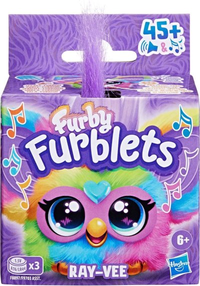 Furblet Electric Rave hraje veselou hudbu. Více než 45 zvukových reakcí: Furblets mluví jazykem Furbish, vydávají legrační zvuky a zpívají originální melodie. Dokážou harmonizovat, společně zpívají písně a společně interagují s velkou hračkou Furby. Díky odnímatelnému klipu lze Furblet snadno připnout na batoh nebo tašku. Pro provoz jsou potřeba 3ks baterie typu LR44 (jsou součástí balení).