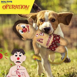 Oživte dětské vzpomínky s hračkou pro psy Hasbro Operation Cavity Sam! Tato oficiálně licencovaná plyšová hračka s pískajícími a vlnícími se efekty a odolným tahacím lanem nabízí vašemu psovi hodiny aktivní zábavy. Měkká, bezpečná a plná charakteru – perfektní směs nostalgie a hravosti pro vašeho čtyřnohého společníka.