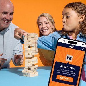 Hra Jenga je zábavná společenská hra pro 1 a více hráčů, jež si chtějí otestovat svoji trpělivost a šikovnost. Hra začíná postavením věže z 54 dřevěných kvádrů. Hráči se pak střídají ve vytahování kvádrů, musí však být opatrní, aby věž nespadla. Je dovoleno používat pouze jednu ruku a po vytažení kvádru ho hráč položí zpět na věž. Musí vždy dokončit jedno patro, než se začne stavět nové. Komu věž spadne, prohrává. Hra pomáhá v budování trpělivosti a zabavíte s ní celou rodinu. Nyní v rozšířené verzi s digitální kostkou, kterou naskenujte pomocí QR kódu v balení nebo postačí otevřít webovou aplikaci. V aplikaci jsou různé veselé výzvy. Jednou z výzev je akce „Team-Up“ při které hráč, který hodí vybere dalšího hráče, který bude působit jako jeho oči. Obsahuje 54 bloků Jenga z tvrdého dřeva, skládací pouzdro a návod. Pro 1 nebo více hráčů. Vhodné pro děti od 6 let. Rozměr balení: 27,6 x 7,9 x 7,9 cm.