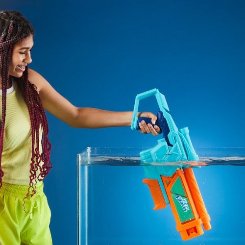 Vodní blaster Nerf Super Soaker Mega Dunk-Fill je vybaven nádržkou která umožňuje rychlé a jednoduché plnění, takže můžete být během okamžiku připraveni na vodní dobrodružství. Díky inovativní konstrukci nádržky se voda napustí prakticky okamžitě – stačí jednoduše ponořit blaster do vody a sledovat, jak se ihned napustí. Transparentní nádrž má kapacitu až 1 litr, což zajišťuje dlouhotrvající zábavu. Pomocí pumpovací rukojeti pak snadno aktivujete silný proud vody. Vodní blastery Nerf Super Soaker jsou ideální venkovní hračky pro děti, které skvěle oživí každou letní aktivitu. Jsou perfektním dárkem, který motivuje k pohybu a zábavě na čerstvém vzduchu, a to s pořádným šploucháním! Vyrobeno z kvalitního plastu. Baleno v krabičce. Rozměr balení: 25,4 x 61 x 6,7 cm. Věk: 6+