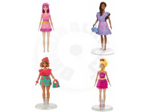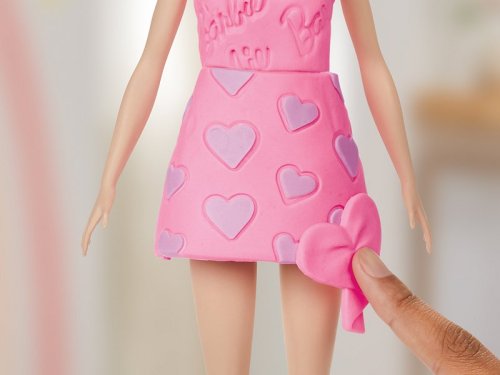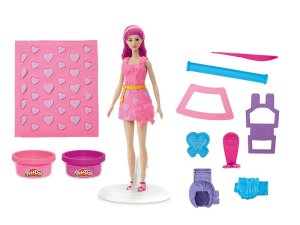 Vytvořte super roztomilé styly se sadou Play-Doh Barbie pro panenky. S touto kreativní sadou je výroba oblečení pro panenku Barbie snadná a zábavná. Jednoduše umístěte panenku na stojan, použijte vzorník a formičky Play-Doh k vystříhání šatů pro Barbie a oblečte ji těmi nejnápaditějšími způsoby. Vytvořte panence dva různé účesy z Play-Doh s formičkami na krátké a dlouhé vlasy nebo si vytvořte vlastní účesy ručně. Přidejte doplňky Barbie, jako je pásek a boty, a dotvořte její vzhled. Obsah sady: 1 x panenka, 1 x stojan pro panenku, 1 x 68,3 g plát modelovací hmoty, 2 x 57 g modelovací hmota, sada doplňků a formiček. Výška panenky 30 cm. Baleno v krabičce. Rozměry balení: 31,8 x 27,9 x 4,4 cm. Věk: 5+