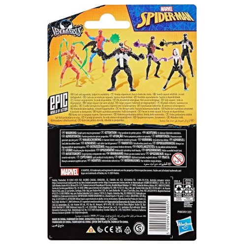 Fanoušci světa Marvel, tuto skvělou 10 cm vysokou figurku Spider-Man Venom si zamilujete. Díky pečlivým detailům je figurka Spider-Man Venom z kolekce Venom Versus také skvělým sběratelským kouskem. Skvělý tip na dárek pro fanoušky všech věkových kategorií. Figurka má pohyblivé kloubové končetiny a hlavu. Tato sběratelská akční figurka Marvel Venom je součástí exkluzivní série Epic World of Action od Hasbro a vyznačuje se charakteristickým černo-bílým designem. Figurky VenomVersus obsahují také specifický doplněk pro dobrodružství poháněná symbionty. Vyrobeno z kvalitního plastu. Baleno v blistru. Rozměry balení: 20,32 x 12,7 x 3,17 cm. Věk: 4+