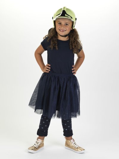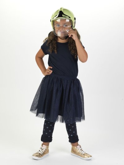 Hasičská helma žlutá s pohyblivou ochranou maskou. Vnitřní rozměr helmy je 40-60 cm uvnitř helmy je umístěn stahovací pásek. Helma ve tmě svítí. Baleno volně. Vhodné pro děti od 3 let.