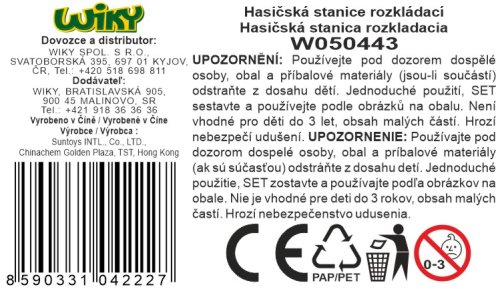 Hasičská stanice rozkládací. Výška stanice 15cm. Obsahuje 1 autíčko, obrázkový návod na rozložení stanice na obale. Zavřená stanice vypadá jako hasicí přístroj.