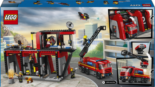 Povzbuďte dětskou představivost herní stavebnicí 60414 LEGO® City Hasičská stanice s hasičským vzorem pro děti od 6 let. Součástí stanice je moderní řídicí centrum, kuchyňka a místy pro spaní nad prostory s vybavením, dále 2 garáže s vysokými sklápěcími dveřmi. Stavebnice obsahuje také dron a hasičskou stříkačku s modulárním žebříkem a přídavnými hasicími přístroji. Mobilizujte posádku čítající 5 minifigurek a hasičského psa a vydejte se vstříc hodinám akcí nabité hry na hasiče. Děti mohou tutostavebnici používat v kombinaci s ostatními z řady Lego City (prodávané samostatně) pro ještě úžasnější dobrodružství!