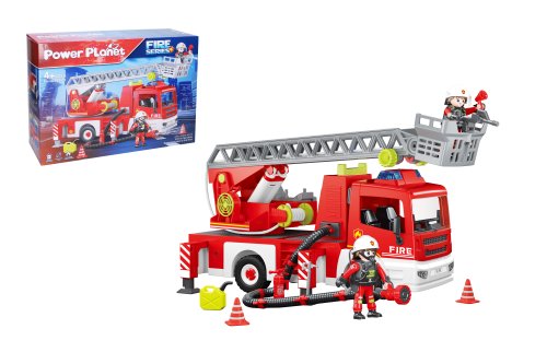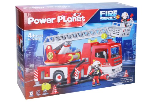 Hasičské auto s žebříkem stavebnice. Velikost 40 cm. Výsuvný žebřík. světelné a zvukové efekty. Baterie 2xAAA nejsou součástí