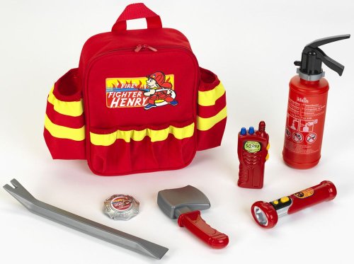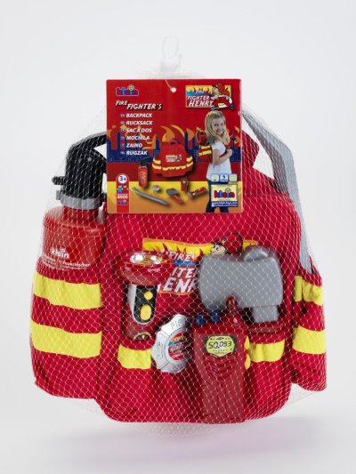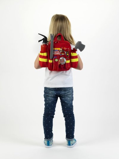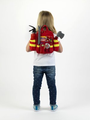 Hasičský záchranářský batůžek pro malé hasiče. V batůžku je spousta praktických věcí - hasičák, sekyra, svítilna, vysílačka, páčidlo. Doporučený věk 3+