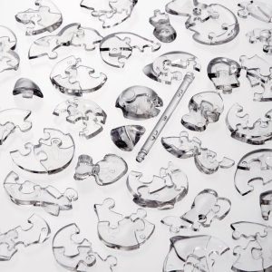 Originální trojrozměrné puzzle z barevného průhledného plastu z různě tvarovaných dílků. Bavte se u skládání a vytvořte nádherný dekorační předmět !