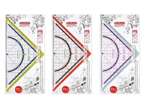 Trojúhelník se základnou 25 cm a úhloměrem my.pen, plastový - z nelámavého materiálu, s odjímatelným držátkem. Fotografie jsou ilustrativní, barevné provedení dodáváme dle skladových zásob.