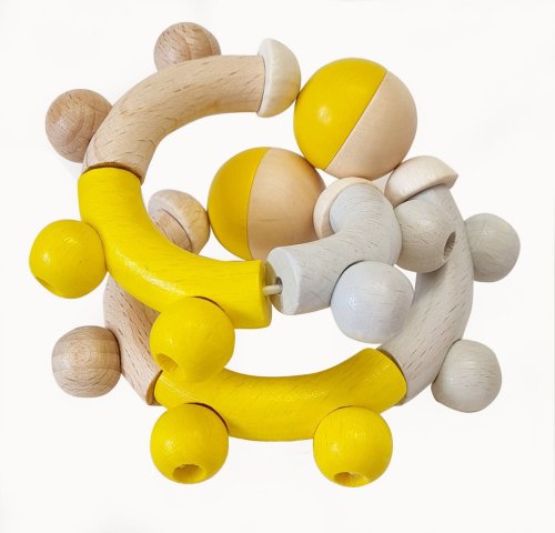 Dřevěné chrastítko. 8 dřevěných částí na elastické šňůře umožňují značnou rozmanitost tvarů. Vysoce kvalitní dřevěná hračka podporuje představivost a hravou formou trénuje obratnost dítěte. Hlavní vlastnosti: rozvíjí motorické dovednostivyrobeno eticky ze dřeva z ekologicky obhospodařovaných lesů