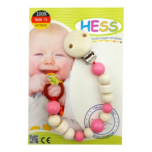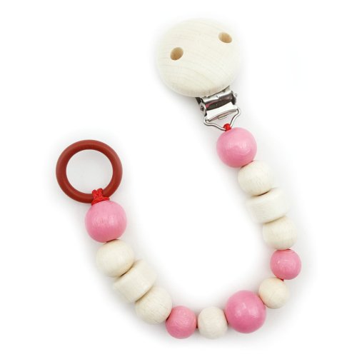 Řetízek opatřený kovovým klipsem a univerzálním pružným silikonovým kroužkem k uchycení dudlíku. Kvalitní povrchová úprava a nezávadné barvy jsou odolné vůči slinám i potu. Je vyroben v Německu, ze dřeva z německých lesů. Hlavní vlastnosti:univerzální silikonový kroužekpraktický kovový klipsodolné a ekologické zpracování