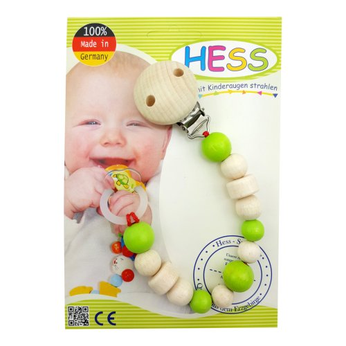 Řetízek opatřený kovovým klipsem a univerzálním pružným silikonovým kroužkem k uchycení dudlíku. Kvalitní povrchová úprava a nezávadné barvy jsou odolné vůči slinám i potu. Je vyroben v Německu, ze dřeva z německých lesů. Hlavní vlastnosti:univerzální silikonový kroužekpraktický kovový klipsodolné a ekologické zpracování