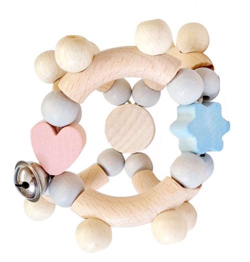 Vysoce kvalitní dřevěná hračka stimuluje představivost a zaujme pastelovými barvami a rolničkou. Hravou formou trénuje jemnou motoriku dítěte. Chcete-li si ji užít po dlouhou dobu, vyvarujte se nadměrného působení vody, čistěte hračku pouze vlhkým hadříkem. Chrastítko nevařte, nedávejte do sterilizátoru ani nepoužívejte jiné sterilizační metody. Hlavní vlastnosti: vyrobeno eticky ze dřeva z ekologicky obhospodařovaných lesůpoužity ekologické a odolné barvy