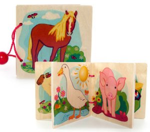 Barevná obrázková kniha z bukového dřeva. Hlavní vlastnosti: hračka vhodná pro rozvoj motoriky nejmenších