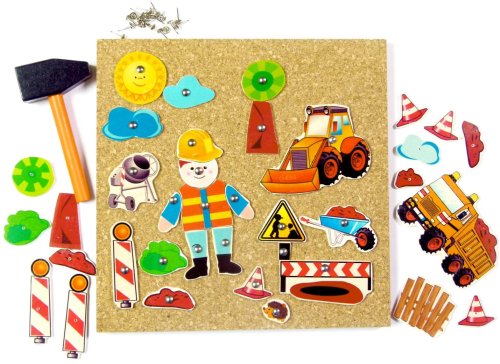 S touto zatloukací hrou se nebudete nudit. Použité barvy a tvary stimulují představivost. Tvořte rozmanité obrazy a cvičte jemnou motoriku Vašeho dítěte. Součástí sady jsou tvarové dílky z tištěné překližky, dřevěné kladívko, korková podložka a 50 ks hřebíčků s velkou půlkulatou hlavičkou. Hlavní vlastnosti: kompletní sada bezprostředně připravená ke hřevyrobeno eticky z ekologicky obhospodařovaných lesůpoužity ekologické a odolné barvy