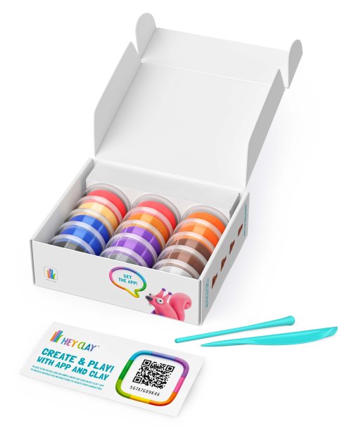 Z modelovací hmoty HEY CLAY si děti mohou vytvořit nepřeberné množství různých postaviček, zvířátek nebo oblíbených hrdinů. Po vymodelování je důležité nechat modely na vzduchu dostatečně zatvrdnout a tím okamžikem se mohou stát součástí dalších her a zábavy. Lze si tak jednoduše vytvořit vlastní figurky a postavičky, nebo schovat Hay Clay opět do kelímku pro další tvorbu. S mobilní aplikací Hey Clay (iOS, Android), kterou si zdarma stáhnete, a která nabídne dětem další možnosti rozvíjení fantazie, barev a kouzlení s vytvářením nových postaviček – kód v hodnotě 4,99USD pro otevření aplikace, najdete v každém balení Sada Hey Clay obsahuje 18 nádobek s měkkou, jemnou a voňavou modelínou a přístupový kód do aplikace pro zakoupenou řadu. Barvy nacházející se v balení Vám umožní vytvořit 6 postaviček. Věk 3+