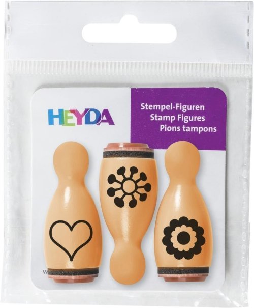 3 motivy dřevěných razítek ve tvaru kuželky. Průměr motivu cca 1,5 cm, výška razítka 4 cm.