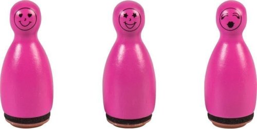 3 motivy dřevěných razítek ve tvaru kuželky. Průměr motivu cca 1,5 cm, výška razítka 4 cm.