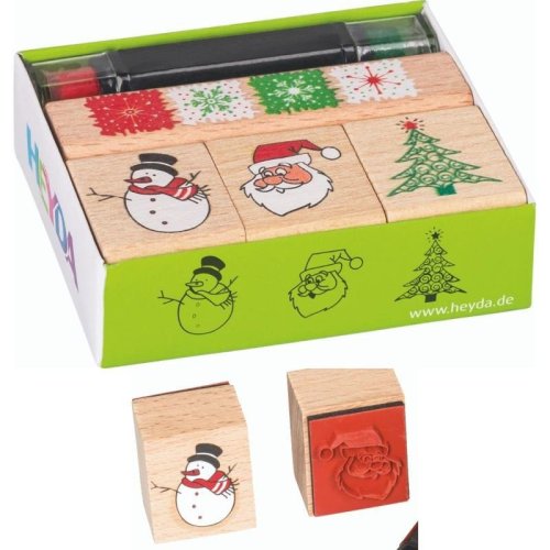 Sada obsahuje 4 kusy gumových razítek na dřevěném špalíku a 2 razítkovací polštářky (zelený a červený). S pomocí této sady vytvoříte originální vánoční přáníčko. Po tvorbě doporučujeme opláchnout razítko vlažnou vodou, poté je připraveno pro další tvoření.