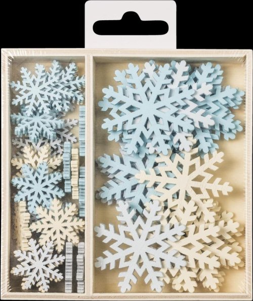 Dřevěné ozdoby v praktickém boxu, 9 motivů po 5 ks od každého motivu, celkem tedy 45 kusů dekorací. Barva boxu je přírodní dřevo. Rozměr jednoho motivu cca 3cm x 3cm. Ideální pro zdobení přáníček, dárků, krabiček apod.