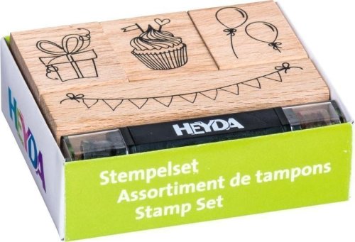 Razítkovací set obsahuje 4 ks dřevěných razítek různých velikostí a barvící tužku. Jedná se o gumové razítko na dřevěném špalíku což zaručuje velice kvalitní tisk. Při použití kvalitní razítkovací barvy vykreslí i ty nejjemnější detaily. S touto sadou vyt