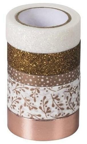 Balení obsahuje 5 typů ozdobných samolepicích papírových pásek. Rozměr pásek v balení: 2x: 1,2 cm x 2 m, 1x: 1,8 cm x 6,5 m, 1x 0,6 cm x 6,5 m, 1x: 1,2 cm x 6,5 m Velmi snadno se sundají, lze opětovně použít. Vhodné na ozdobení dárků, přáníček, scrapbookových projektů i dekorací v domácnosti.