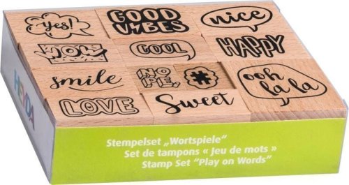 Set obsahuje 12 motivů. Razítka jsou upevněna na dřevěném bloku. Vhodné pro použití i s jakýmkoliv inkoustem, který máte k dispozici.