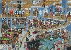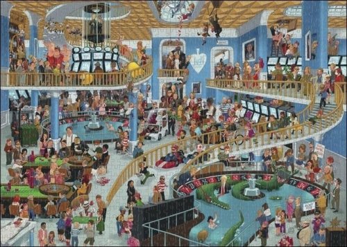 Puzzle od umělce Uli Oesterle balené v netradiční trojboké krabici. Karikatura plná barev a tvarů. Balení obsahuje plakát jako předlohu pro skládání. Rozměr složeného puzzle cca 70x 50 cm