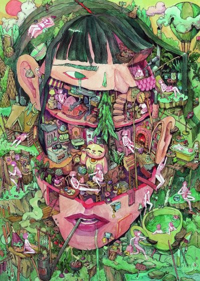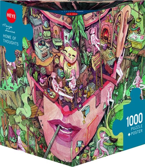 Puzzle od karikaturistky jménem Marija Tiurina v netradiční trojboké krabici, která obsahuje plakát jako předlohu pro skládání. Rozměr složeného puzzle cca 50 x 70 cm