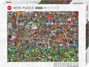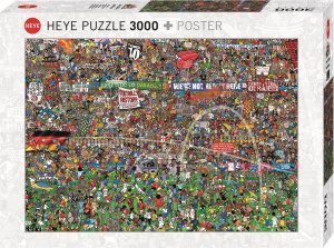 Puzzle pod značkou HEYE se vyrábí v Německu již od roku 1962 a dílky do sebe přesně zapadají díky použití pěčlivě naostřených nástrojů při výrobě. Většina vyráběných motivů jsou díla známých kreslířů, ilustrátorů a karikaturistů. Speciální podkladová vrstva zaručuje kvalitu a stálost i po několikanásobném skládání. Rozměr složeného puzzle cca 117 x 84 cm