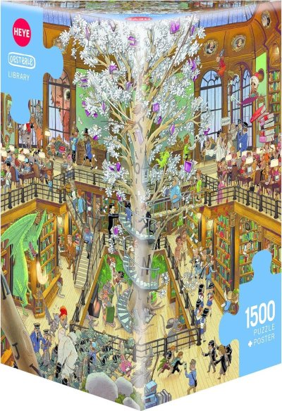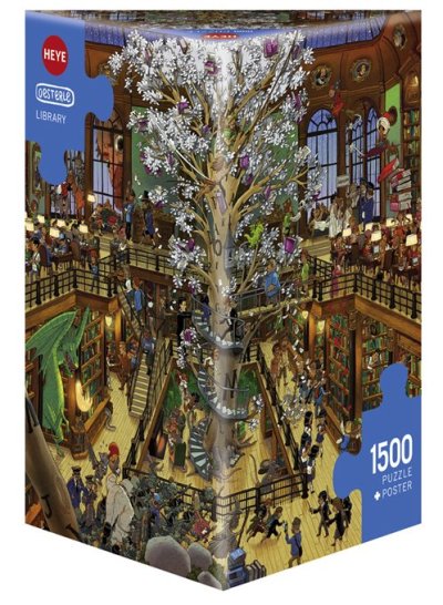 Puzzle balené v netradiční trojboké krabici, která obsahuje plakát jako předlohu pro skládání.