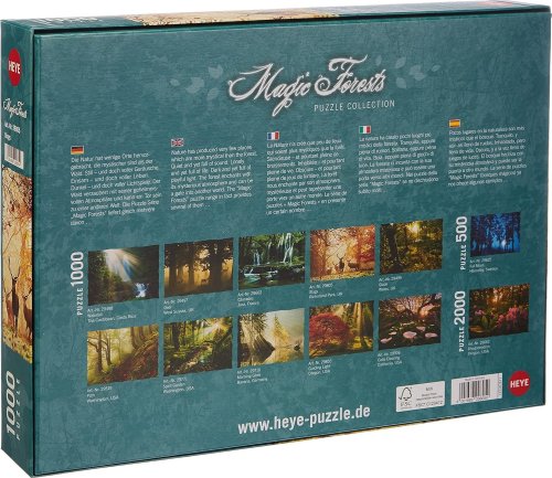 Unikátní kolekce puzzle od HEYE ze série Magic Forests (Magický les) jsou překrásné fotografie, na kterých je lesní příroda zachycena fascinujícím způsobem. Kouzelná a tajemná zákoutí lesa. Tichá a přesto plná zvuků. Osamělá a tak plná života. Potemnělá a přesto zalitá slunečními paprsky. Les s okouzlující atmosférou je jako brána do jiného světa.